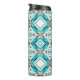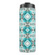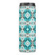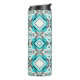 Este diseño presenta un patrón geométrico con un motivo de diamante repetitivo con bordes borrosos y pluviales que irradian hacia afuera. El efecto general combina simetría, energía y profundidad, un equilibrio entre la sensación tribal y la geometría moderna en turquesa, gris y crema.