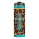 Magnífica cruz turquesa en una huella animal. Borde superior e inferior turquesa.