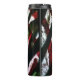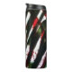 Foto abstracta, con rayas anchas y aleatorias, entrelazadas, colores audaces de, negro, rojo, verde oscuro, oliva y similares a blancos, tallos de bambú.