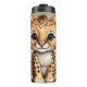 This cute baby cheetah travel tumbler features a wide-eyed, smiling cub with soft fur and playful spots. Perfect for animal lovers and kids at heart, it’s a fun and wild way to sip your favorite drink on the go!