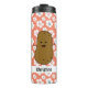 Tubo termal adorable con una linda patata marrón personalizado. El fondo es un adorable estampado floral de flores de margarita blancas de color rosa salmón. Una plantilla en la parte inferior de la papa para agregar su nombre.