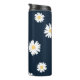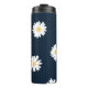 Echa un vistazo a este diseño con un patrón suave de margarita sobre un azul marino oscuro.