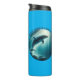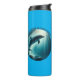 Un delfín bajo el agua con rayos de luz solar filtrándose a través del agua. Las palabras 'bucear profundo, vivir libre' están escritas encima de la imagen. Un maravilloso tumbler con un mensaje inspirador. Contiene contenido generativo.
