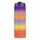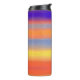 Un vibrante vaso térmico envuelto en audaces franjas horizontales de pinceladas que mezclan púrpuras profundos, naranjas intensos, azules eléctricos, amarillos soleados y rojos intensos en un gradiente artístico suave. La textura pictórica añade un toque cálido, expresivo y artesanal, mientras que la construcción aislante mantiene las bebidas calientes o frías en movimiento. Este vaso moderno e inspirado en el arte aporta color estimulante y energía creativa a los desplazamientos, entrenamientos y rutinas diarias.