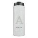 Un tumbler termal personalizado, elegante y único en blanco y negro, con un monograma (la letra A) cubierto de diamantes de imitación y purpurinas (¡estos son efectos digitales, no piedras reales ni purpurinas!) sobre un fondo blanco resplandeciente. Un regalo encantador para los Navidades y las vacaciones de invierno, pero también para una dama de honor, mejor amiga, mamá o cualquier mujer especial (o chica) en tu vida que ame diamantes de imitación y purpurinas.