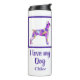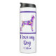 Patrón abstracto digital Doberman Pinscher mascota de silueta de perro morado, rosa, amarillo y azul. Este tumbler térmico seguramente pondrá una sonrisa en cualquier cara de los amantes del perro. Además, es ecológica, así que puede conservarla por años. Cambie ‘Amo a mi perro’/ ‘Nombre’ por cualquier texto que le guste a ambos lados de la botella.