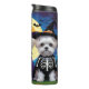 Escena divertida de Halloween con un pequeño y travieso cachorro mirando desde una calabaza tallada, rodeada de vibraciones de otoño espeluznantes y divertidas. Con un encanto descarado y colores otoñales, es el toque de humor perfecto para la temporada.