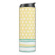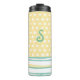 Tumbler térmico de bonito hecho en verde azulado, amarillo y blanco, con puntos caprichosos y rayas horizontales. Personalice el monograma de una letra, en la parte delantera del vaso. Gran idea de regalo para ella.