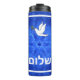 Texto en hebreo personalizable (Se puede reemplazar el hebreo por texto en inglés) que dice "shalom" (paz) y una paloma con un poco de rama de olivo en su pico sobre un agradable fondo fractal azul y blanco con una estrella de David y la sugerencia de las alas de pájaro.