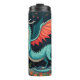 Un pequeño dragón verde-azul en una jungla de medianoche con flores naranjas brillantes hace un tumbler térmico de fantasía muy lindo y divertido.