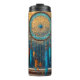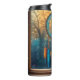 Arte de IA que representa a un cazador de sueños en una ventana que da a los hermosos árboles de las Caídas. Perlas y plumas azules y naranjas.
