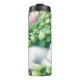 Termo Dulce Napping White Kitten bajo un Bush Rosa