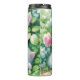 Tumblador térmico personalizado. Adorable gatito blanco y esponjoso durmiendo bajo un arbusto rosa rosa acuarela arte ai.