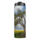 Un viejo árbol decrépito frente al campo de colza florecido en un hermoso día soleado