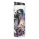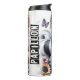 Un hermoso Papillón con sus distintivos orejas de mariposa es capturado en una posición elegante, rodeado de delicados girasoles, toronjas violetas y mariposas extravagantes. La obra de arte destaca la elegancia y el encanto de la raza en un ambiente floral sereno.