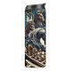 El diseño representa una fascinante e imaginativa escena de ajedrez en la que caballos con impresionantes manes y armaduras detalladas se reúnen sobre un tablero de ajedrez. Los caballos parecen estar estratégicamente involucrados en el juego del ajedrez, creando una fuerte conexión simbólica con el caballero en el juego del ajedrez. El estilo combina el grabado vintage con el ilustracion moderno, con líneas dinámicas y colores dramáticos en tonos azules, dorados y marrones. El diseño transmite un ambiente místico y estratégico, perfecto para los amantes del ajedrez y de la fantasía.