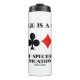 Muestra tu lado de puente seco / duplicado con este vaso térmico con los cuatro palos de cartas junto con el siguiente truismo de puente que dice "Puente es un juego de reglas de comunicación específicas".