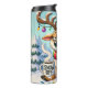 Este gracioso ilustracion muestra a un reno cansado usando un sombrero de Santa, con una cadena de luces enredadas en sus cuernos. Sostiene una taza de café que dice 'NIEVE DESACTIVADA', y un cartel detrás dice 'NO SOLAMENTE ANTES DEL CAFÉ'. La escena, con un gran reloj despertador, capta el relativo humor navideño de necesitar cafeína.