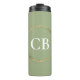 Monograma de personalizable con marco de oro falso sobre el elegante Tumbler Termal "Tranquil Sage": El diseño clásico combina con el estilo y la funcionalidad modernos en nuestra Colección Elegancia Silenciada. Esta exclusiva y elegante vajilla, con el nombre de personalizable en negrita y moderno, enmarcada por un falso círculo dorado, es el regalo perfecto para usted o para un ser querido. Manténgase moda y saboree sus bebidas cuando vaya. Tranquil Sage es un lugar tranquilo y equilibrado, que recuerda a las cualidades tranquilizadoras de la naturaleza. Combina los tonos suaves de verde y gris, que evocan una sensación de tranquilidad y armonía. Al igual que las hojas de un bosque tranquilo, este color invita a un ambiente tranquilo y rejuvenecedor.
