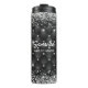 Elegante purpurina negro de imitación gotea monogramado termal. Un tumbler termal moderno y de moda. Es el regalo perfecto para 16 cumpleaños, boda, ducha de novia, aniversario, ducha de bebé o soltera para alguien que ama el lujo glam y los estilos de moda. Puedes personalizarlo con tu propio texto, nombres o eventos como quieras. Ya sea para día de San Valentín, Navidad o cualquier ocasión en general, este vaso térmico hará una gran idea de regalo para cualquier chica o mujer que ame la moderna y brillante elegancia. NOTA: Se trata de gráficos impresos planos, sin purpurinas, joyas ni piezas elevadas.