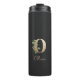 Elegante tumbler térmico negro con monograma botánico dorado en el centro.