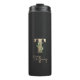 Elegante tumbler térmico negro con monograma botánico dorado en el centro.