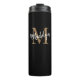 Elegante Monograma de Oro Negro Girly Script Fitness Thermal Tumbler. Personalice fácilmente este elegante y moderno tumbler termal de fitness con su monograma y nombre personalizado.