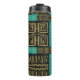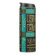 Un sofisticado patrón geométrico de inspiración tribal africana con intrincadas líneas doradas en un fondo turquesa y negro. Este diseño sin fisuras combina el patrimonio cultural con la estética moderna, lo que lo hace perfecto para la decoración, la moda y los accesorios del hogar. Ideal para los amantes del arte étnico, los motivos africanos y los diseños geométricos audaces.