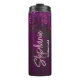Elegante purpurina magenta, rosa y morado gotea monogramado termal. Un tumbler termal moderno y de moda. Es el regalo perfecto para 16 cumpleaños, boda, ducha de novia, aniversario, ducha de bebé o soltera para alguien que ama el lujo glam y los estilos de moda. Puedes personalizarlo con tu propio texto, nombres o eventos como quieras. Ya sea para día de San Valentín, Navidad o cualquier ocasión en general, este vaso térmico hará una gran idea de regalo para cualquier chica o mujer que ame la moderna y brillante elegancia. NOTA: Se trata de gráficos impresos planos, sin purpurinas, joyas ni piezas elevadas.