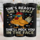 Abraza el humor con este juguetón negro, que incluye un pollo personalizado con gafas de sol y el gracioso texto "Ella es bella, ella es Grace, te mete la cara". Perfecto para una bebida informal, este gráfico le aporta un toque peculiar y divertido a su armario. Ideal como regalo único para los amantes del pollo o para cualquiera con sentido del humor.