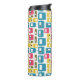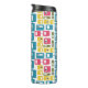 Esta botella termal tiene un diseño moderno de mediados de siglo de rectángulos redondeados, algunos de los cuales están conectados y algunos tienen estrenos, en colores retro de rojo, oro, verde y turquesa. Si te gusta el diseño pero prefieres colores diferentes, envíame un mensaje.