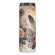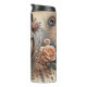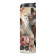 A beautiful brown and white horse, adorned with a delicate floral crown of roses and blossoms, gazes serenely from this vintage-inspired portrait. A majestic peacock feather and soft, muted tones enhance the ethereal and rustic elegance of this captivating equestrian artwork.