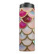 Un patrón hipnotizante de escalas opalescentes de inspiración de sirena en tonos rosa, magenta y melocotón, en un borde dorado. La combinación de colores llamativos y el efecto holográfico brillante crea un diseño cautivador y encantador. Personaliza con una inicial.