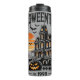 La fantasmagórica escena de Halloweentown Haunted House se crea en una silueta negra con acentos naranjas y un fondo gris. Se envuelve alrededor de este tumbler termal y cuenta con un árbol viejo estéril, un cementerio, jack o'lanterns, una luna llena naranja y murciélagos volando por ahí. Una casa está en el fondo y dos niños se están agotando para ir a truco o tratar. Dice que Halloween está en la parte superior en letras de goteo y el año 1998 en la parte inferior.