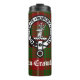 Escudo de armas del clan escocés Crawford y texto personalizable sobre fondo de tartán.