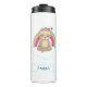 Una pereza marrón con un ambiente hippie de los años 60. Sentado tranquilamente en meditación sobre una nube blanca esponjosa y un arcoiris colorido también.