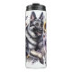 Un majestuoso pastor alemán con una expresión feliz y de boca abierta se captura en una posición dinámica, rodeado por un hermoso conjunto de girasoles, margaritas moradas y delicadas mariposas. La obra de arte celebra la inteligencia de la raza y el espíritu alegre en un ambiente florido y vibrante.