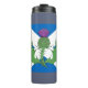 Este diseño de Richard H. Fay presenta el emblema floral del cardo de Escocia y un importante símbolo nacional escocés desde el siglo XIII, que se exhibe en el salón azul y blanco de la bandera escocesa.