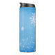 Hermoso diseño invernal en azul y blanco. Disfruta de una bebida caliente y del momento azul de un día de invierno,