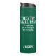 Cuando los tiempos son duros, es importante permanecer positivos y recordar que eventualmente mejorará. También es importante mantener tu sentido del humor. Este tumbler térmico dice: "Esto también pasará. Puede pasar como una piedra de riñón, pero pasará", en un estilo tipográfico bonito. Puede cambiar el color de fondo verde si lo desea. Un gran regalo para el aliento o la simpatía. Cualquiera de los diseños que ves en esta tienda se puede personalizar y poner en cualquiera de los muchos productos de Zazzle - sólo contacta conmigo usando el enlace "Contáctese con este Diseñador" de abajo.