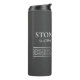 Coordenadas de latitud y longitud para la ubicación de Stonehenge, un sitio de la UNESCO en la llanura de Salisbury en Wiltshire, Inglaterra. Tumbler terman con embellecimiento del borde celta plateado con fondo gris oscuro