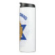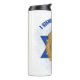 Esta moderna botella de agua / vaso de agua termal es el regalo perfecto para alguien que quiere mostrar su apoyo a Israel! Un León pintado a mano de Judá es el punto central, con la Estrella de David al fondo. La tipografía elegante dice: "Estoy con Israel" en azul. Un fondo azul texturado le da un aspecto granulado. *Obra de arte original creada por Tracey Khalei / Orabella Prints.