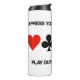 Los jugadores de puente duplicados disfrutarán de este tumulto térmico con consejo de puente irónico que incluye los cuatro conjuntos de cartas junto con el dicho "Express Your Rational Side Play Duplicate Bridge". Puente memorable diciendo que el tumbler térmico para cualquier ávido jugador de puente duplicado que entienda lo que realmente es un juego racional de duplicar puente!