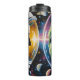 Extranjero y astronauta en el espacio mirando hacia abajo. Fondo de estrellas y planetas.
