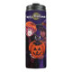 Estos dos niños están listos para engañar o tratar. ¡Incluso su gato negro está vestido con el espíritu de Halloween!