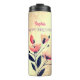 Termo Feliz cumpleaños, nombre, flores en oro gradiente