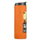 Feliz ilustracion de diseño de texto de Halloween con decoración de casa embrujada, cementerio y murciélagos en luna llena sobre fondo naranja de grano