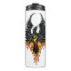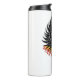 Un pájaro de tinta negra de arte tribal / fénix con llamas de colores en un fondo blanco