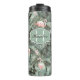 Este tumbler termal presenta un magnífico patrón de flamencos rodeados de abundantes follajes tropicales y orquídeas en verde salado y rosa rubor. Se ha proporcionado una etiqueta que contiene su nombre y su monograma u otro texto. Busque ID868 para ver otros productos con este patrón tropical fresco.