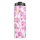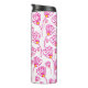 Tumbler térmico floral de flores rosadas.